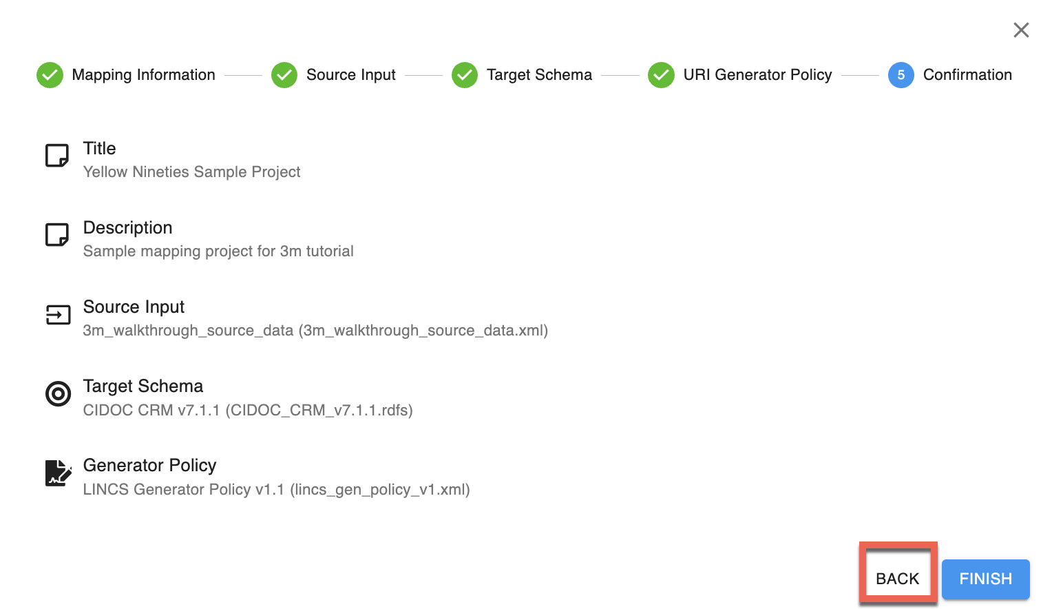 Le titre et la description sont uniquement pour votre référence et ne seront pas inclus dans les données converties. [LINCS a suggéré des normes de titre et de description (/docs/tools/x3ml/create-mapping/recommendations).